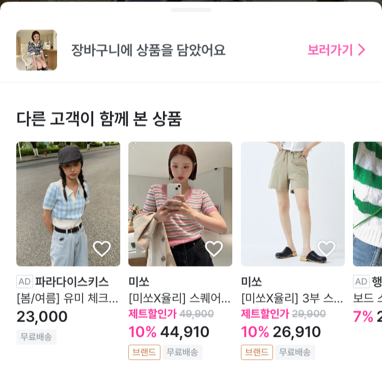 - 해당 상품을 장바구니에 담았던 고객이 함께 구입? 혹은 장바구니에 담은? 혹은 직후에 검색한? 기록을 수집해 추천하는 듯