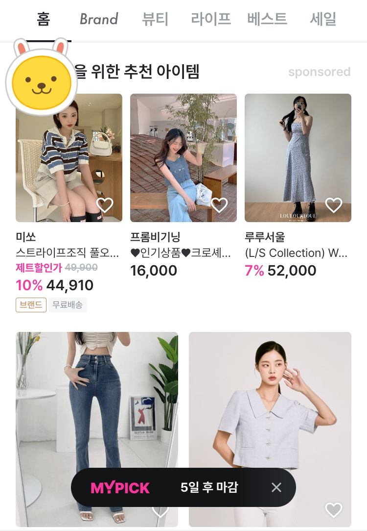 - 서비스 시작 초기 "하나의 앱에 여러 쇼핑몰(동대문 기반) 상품을 큐레이션해주는 앱 "