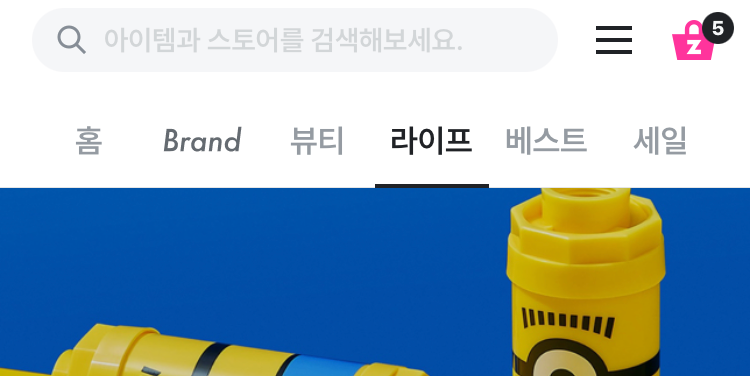 4) 상단 메뉴바에 "Brand" , "라이프" 등 다양한 항목 추가